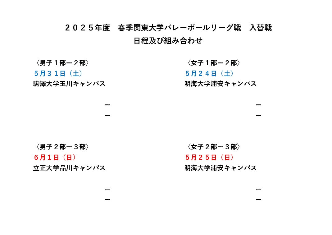 ホーム > 入替戦 結果 更新日:2025/11/01 入替戦 結果 Twitter Facebook PDFファイルをご覧いただくためには、アドビシステムズ社のAdobe Reader(無料)が必要となります。下記サイトよりダウンロードしインストールした上でご覧ください。 Adobe Reader ダウンロード